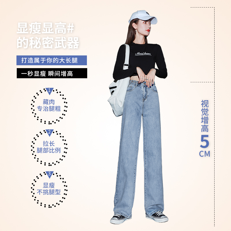 Wide-legged jeans women's autumn 2021 New loose high waist drape feel thin straight drumbed pants women autumn and winter
