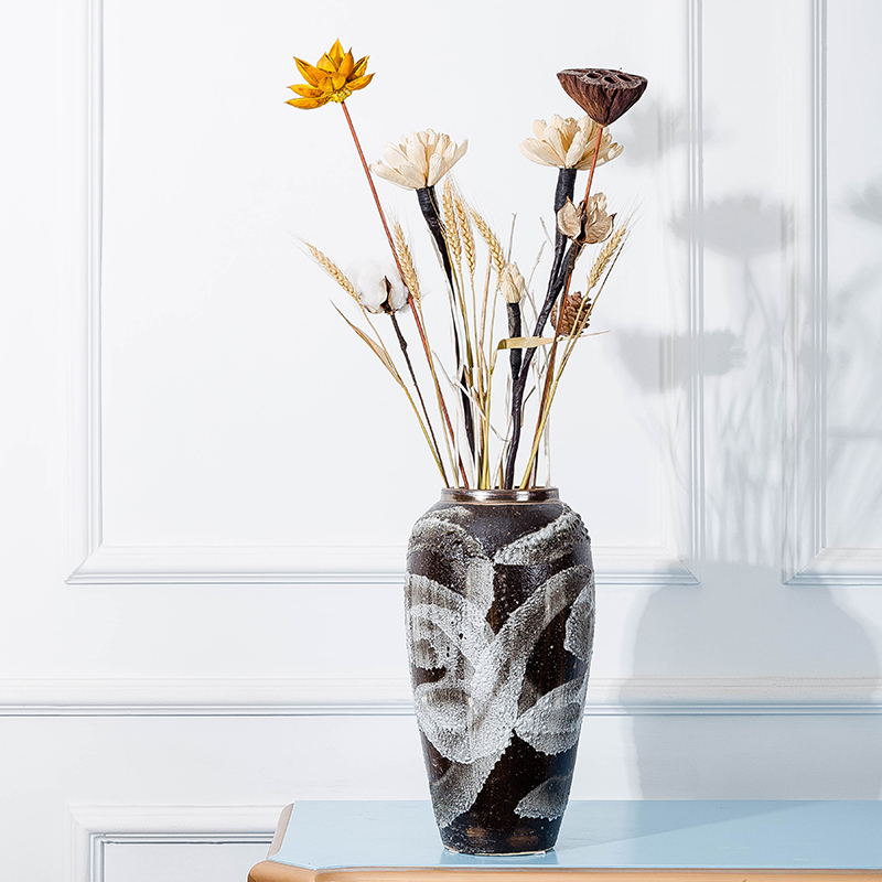 Jingdezhen ceramic vase modern minimalist new Chinese retro nostalgic dry flower arrangement flower pot living room bedroom decoration