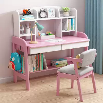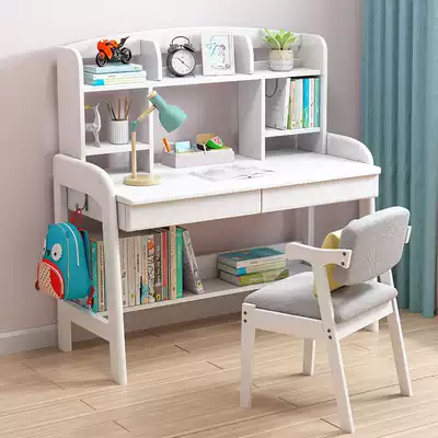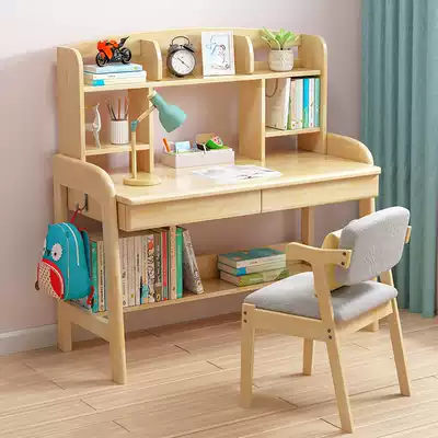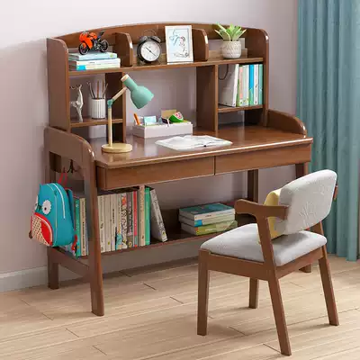 Solid wood desk bookshelf combination simple household bedroom small apartment children's learning desk can lift student computer desk