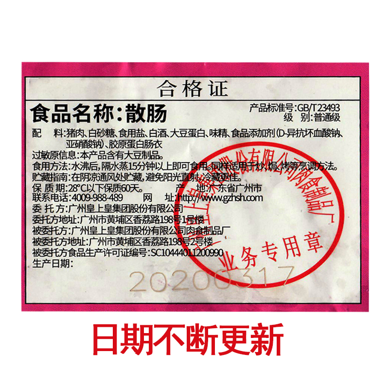 Emperor Emperor bulk sausage 5 kg 2500g authentic Cantonese sausage sausage Guangdong Guangzhou specialty sausage claypot rice