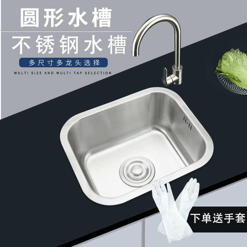 304 Stainless Steel Sink Single Sink Small Number Washing Vegetable Basin Kitchen Small Household Type Dishwashing Pool Balcony Down Basin Wash Basin