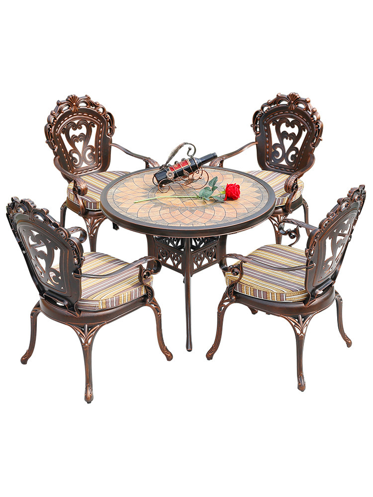 Outdoor courtyard garden villa balcony leisure cast aluminum table and chair combination outdoor open-air European style iron imitation marble