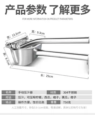 Thickened manual 304 stainless steel juicer household juicer press lemon pomegranate juice squeezer juicer