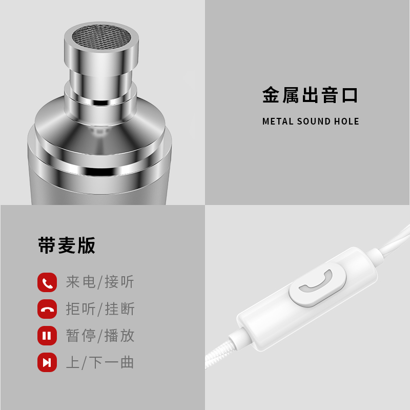 Silver white 3 5mm round hole (aluminum alloy material for a long time without pain HiFi no distortion sound and noise reduction) gun grey -3 5mm round hole (aluminum alloy material for a long time without pain