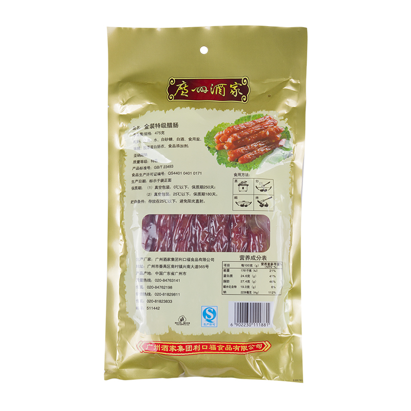 Guangzhou Restaurant Autumn Wind gold premium sausage 475g eight-point thin Cantonese sausage Guangdong sausage Chinese New Year