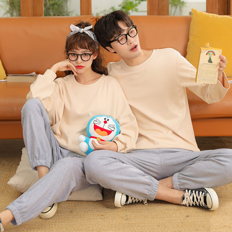 Couple pajamas women's spring and autumn cotton long-sleeved Korean version simple can be worn outside men's summer cotton homewear suit
