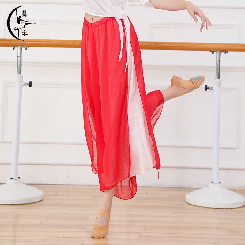 Modern classical dance costume practice pants female side slit wide leg pants adult elegant dance pants show suit