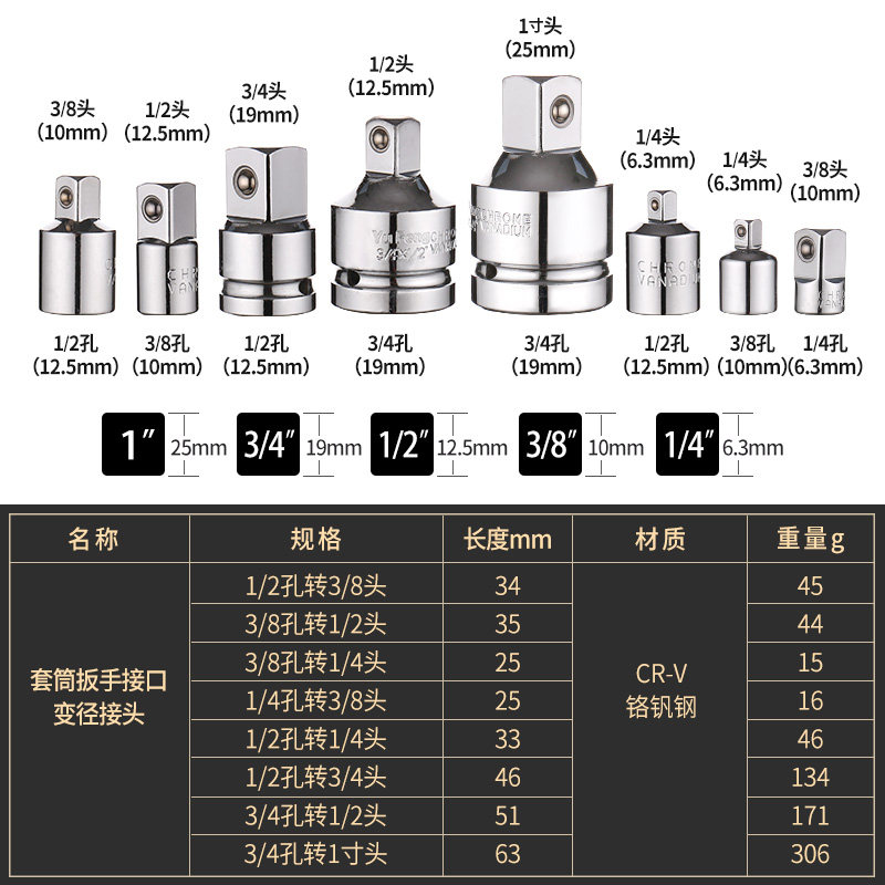 Shengtu Sleeve Convert Head Rotor Ratchet Wrench Connector 1 inch 3 4 to 1 2 to 3 8 to 1 4 cylinder