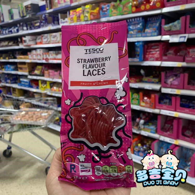 British tesco strawberries taste cola bubble bubble bubble shoelace sugar small snack candy bag 75g
