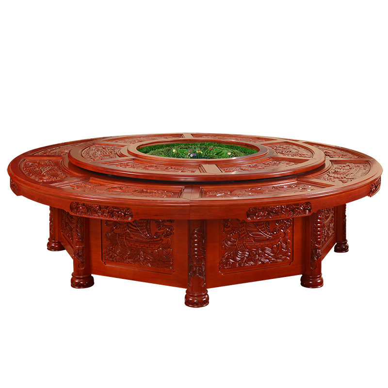 New classical hotel dining table large round table round wooden turntable electric dining table and chair combination luxury hotel table