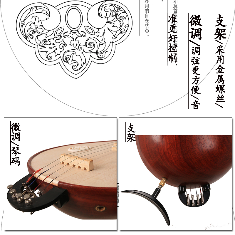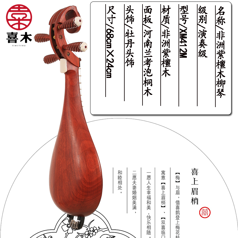 Rosewood fine-tuning willow qin Hiki Manshi musical instrument African rosewood earth pipa beginner professional examination manufacturer