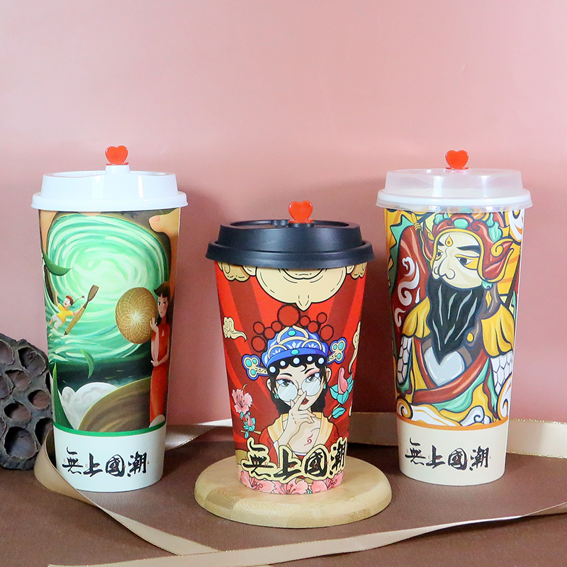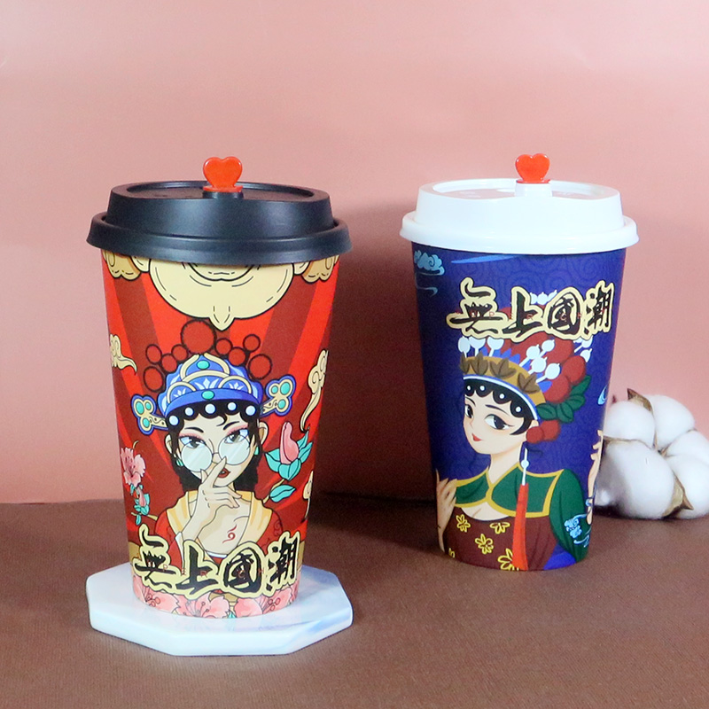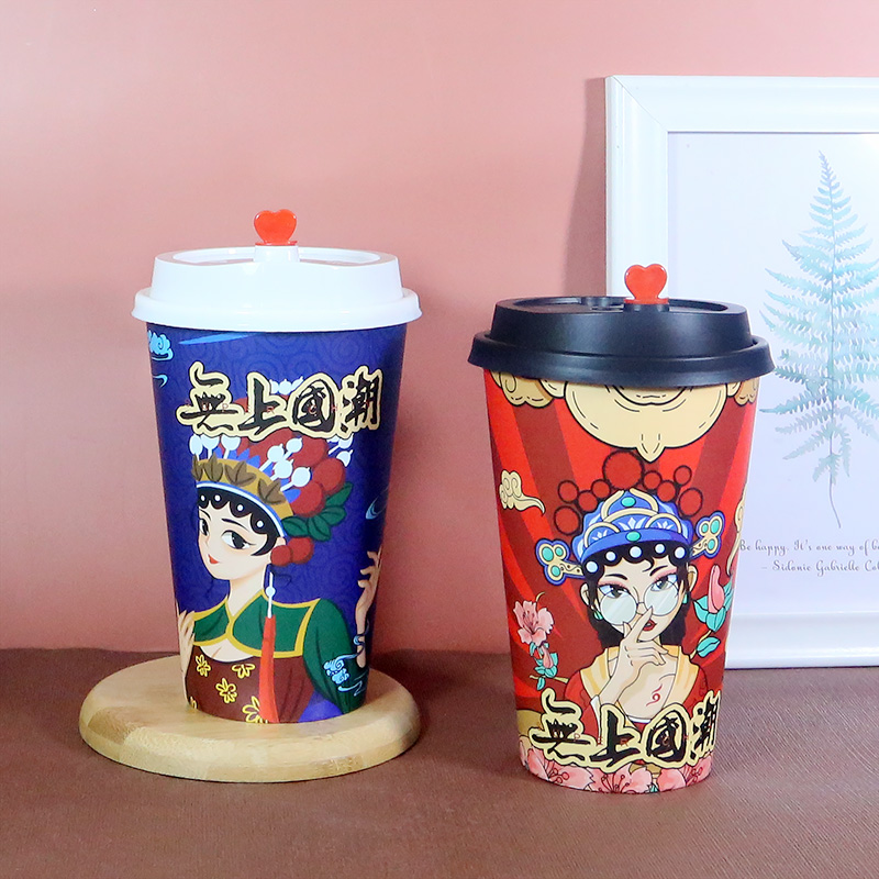 National tide style milk tea cup disposable paper cup hot drink coffee soy milk thickened packing with cover commercial double dumb film