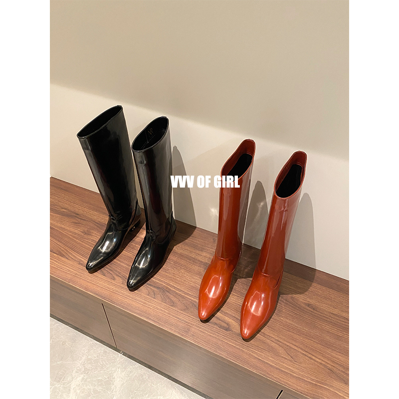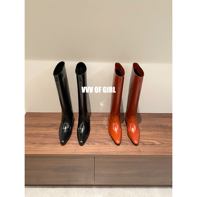 Net red wind 2021 autumn winter new but knee boots women's pointed flat straight riding boots skinny boots tall boots