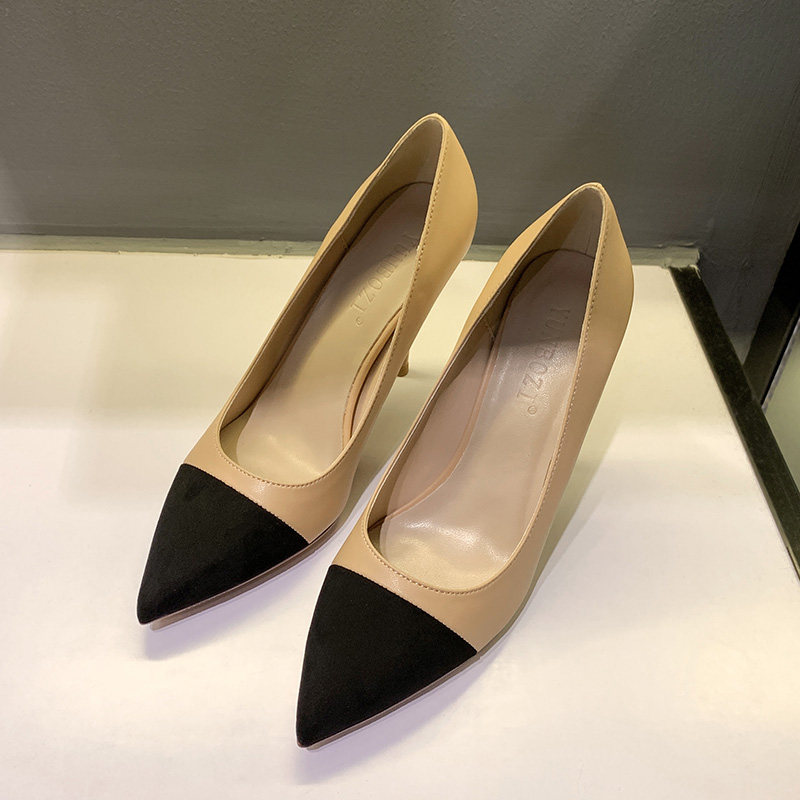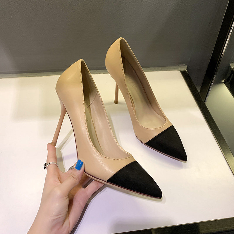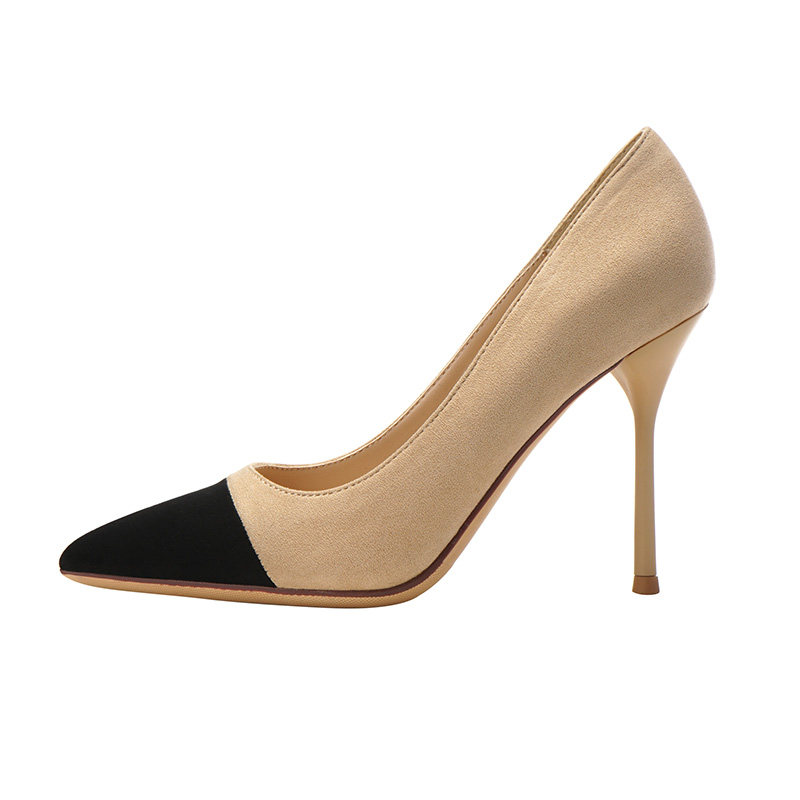 A D Hepburn nude high heels women's stiletto 2022 new all-match pointed toe shallow mouth suede professional work