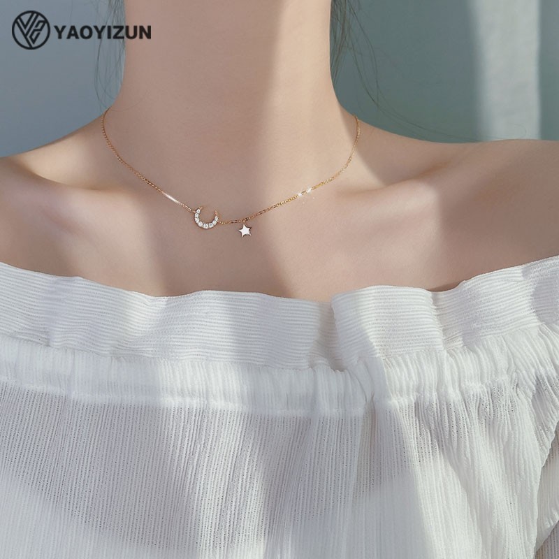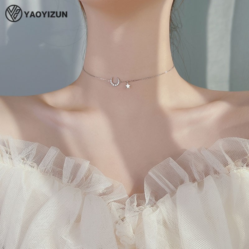 Korean star moon necklace female clavicle chain Sterling silver niche brand 2021 new simple 925 silver necklace