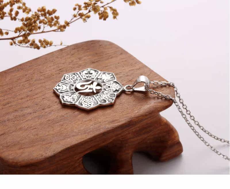 Original Hangings Eight Auspicious Pendant Eight-treasure Silver Decorated Seed Character Necklace
