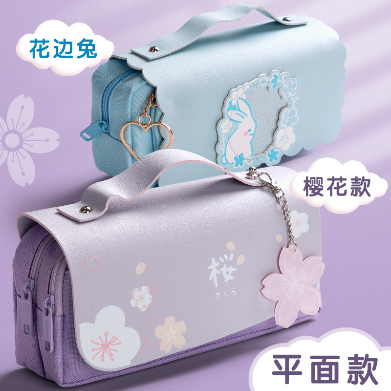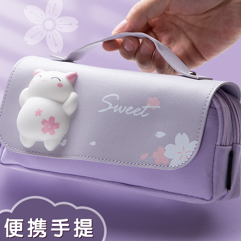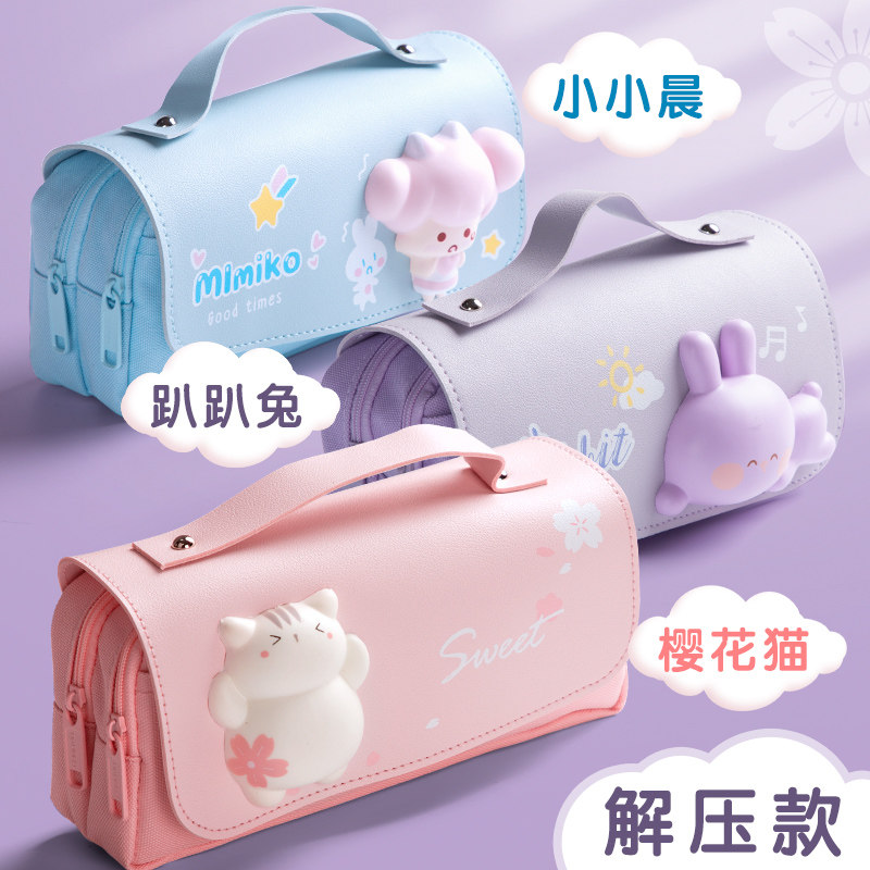 2021 2020 New Popular Decompression Pen Bag Girl Large Capacity Elementary School Senior Sense Niche Decompression Ins Japanese Female Junior High School Children's Oversized Three-Layer Pencil Stationery Pen Box Bag