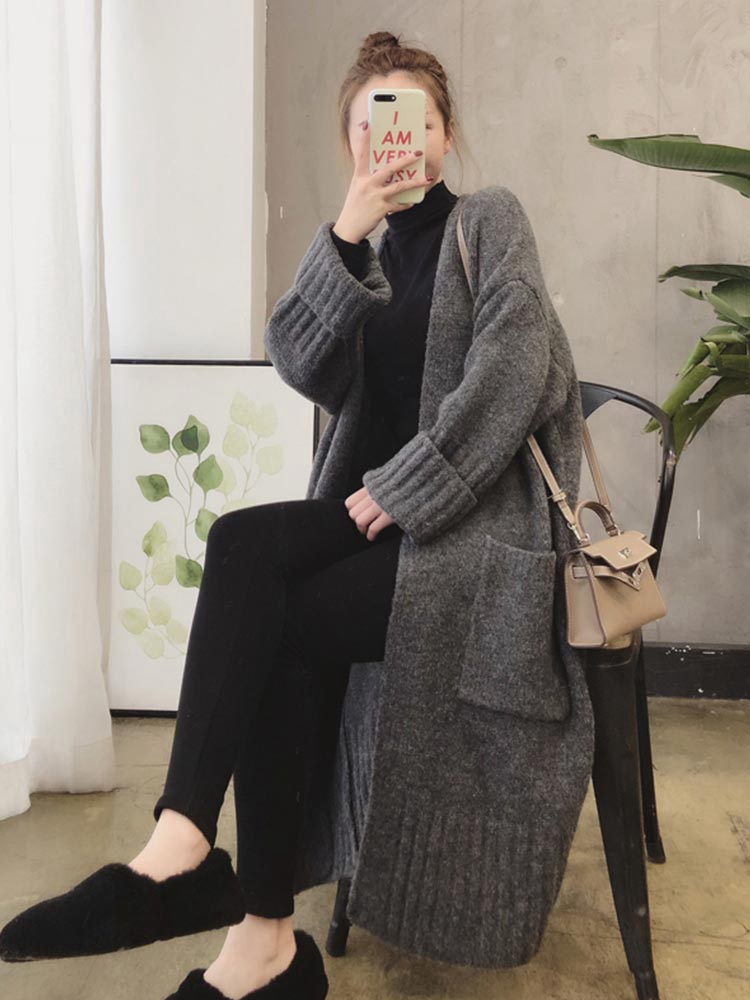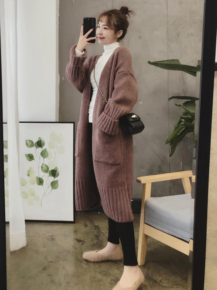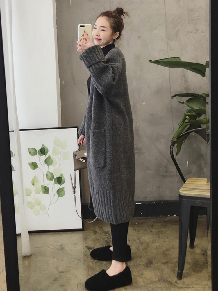 2021 autumn Winter's new Korean version of women's clothing Lazy Wind with Lazy Wind in thickened Knitted Cardiovert Sweater Jacket Woman-Taobao