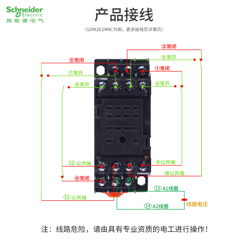 Schneider small middle relay base RXZE1M4C 14 holes 4 open 4 closed pin socket 7A 250V