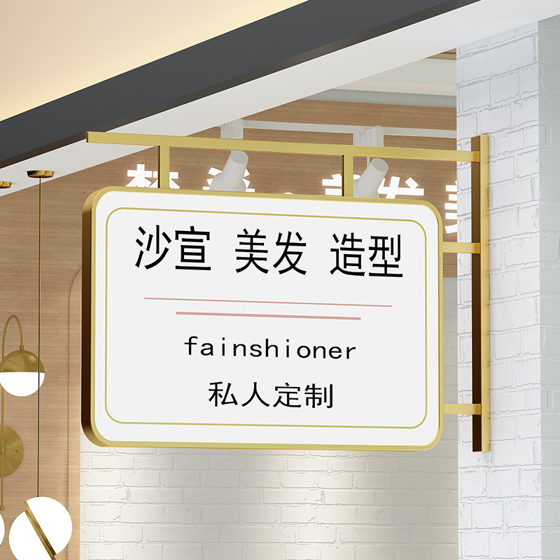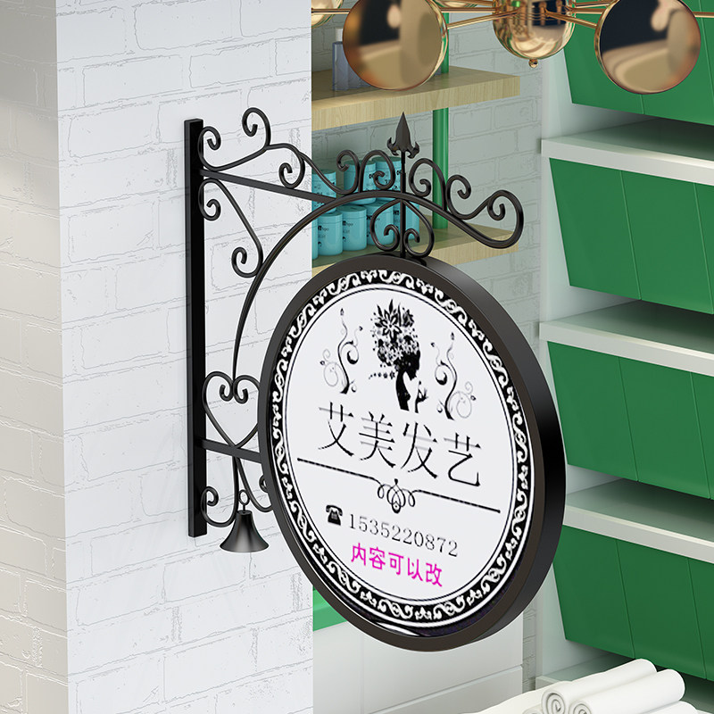 Outdoor waterproof light box billboard shop door head hairdressing signboard double-sided side hanging LED wall-mounted round custom
