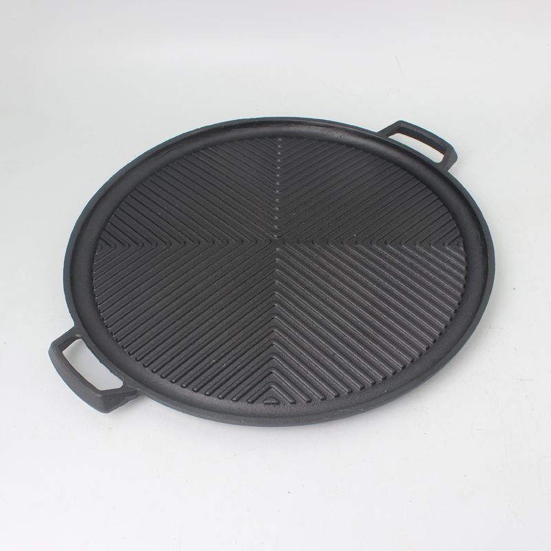 Thickened cast iron double-ear stripe grill plate Grill plate Iron plate Steak frying pan Household steak grill plate Commercial