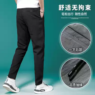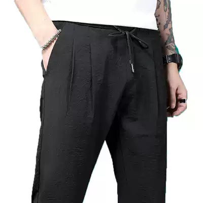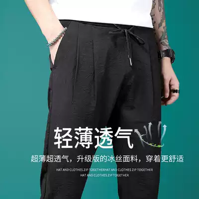 Casual long pants Men's summer ice silk ultra-thin sports quick-drying air-conditioning pants Summer wear elastic lace-up men's pants