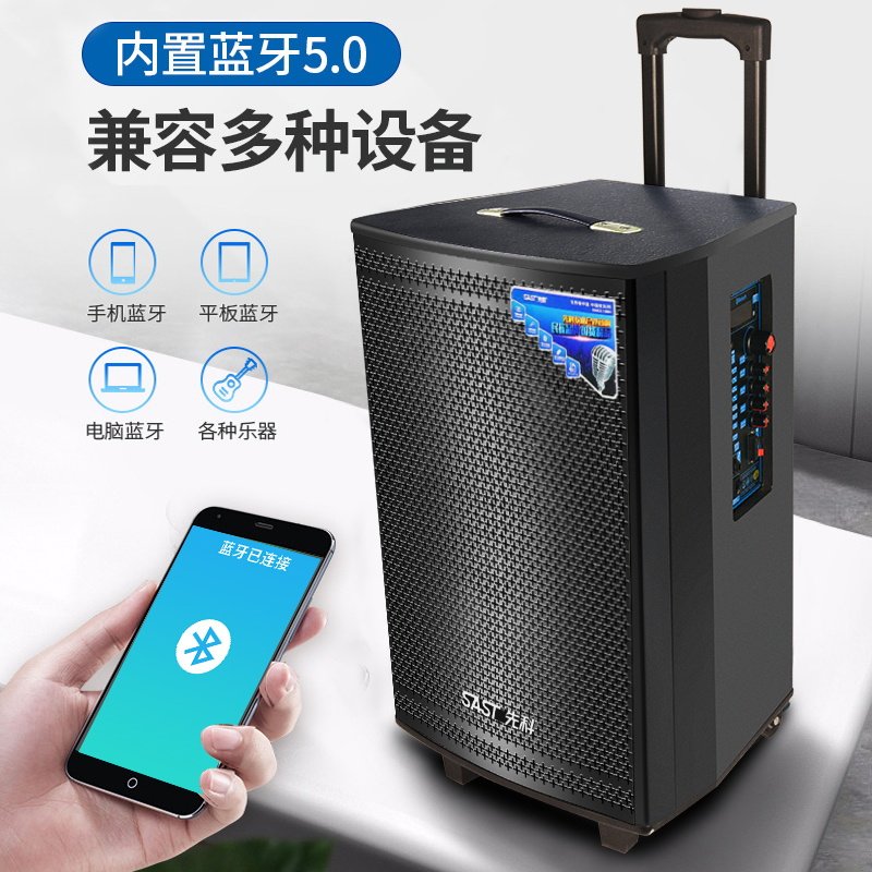 Xianke outdoor singing square dance audio home K song outdoor performance mobile portable drawbar speaker 12 inch bluetooth subwoofer with wireless microphone high-power player
