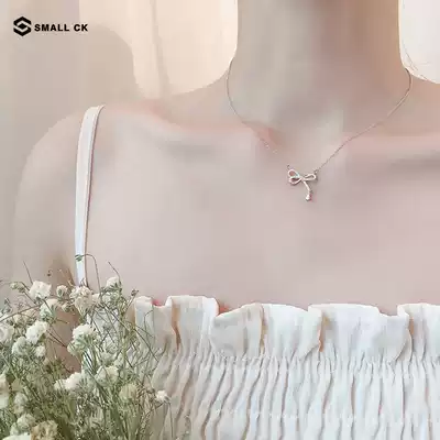 Korean bow necklace female choker sterling silver niche design sense light luxury do not fade fashion cold pendant
