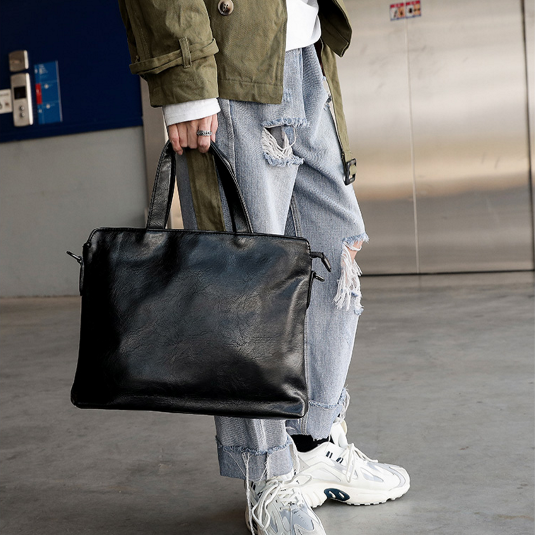 Hong Kong Brief Fashion Genuine Leather Men's Bag Han Edition Business Handbag Briefcase Single Shoulder Slanted Satchel Computer Bag