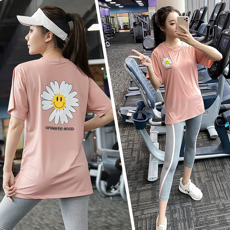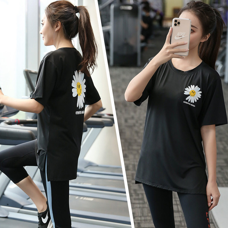 Large - yard exercise t - shirt woman fat mm 200 kg of thin yoga suit short - sleeve T running and leisure short sleeves