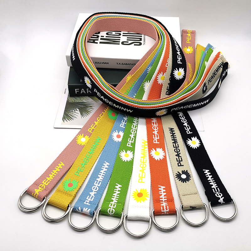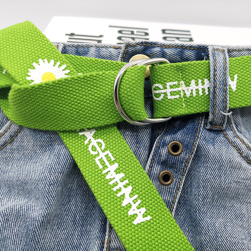 Small daisy belt Men's and women's fabric canvas pants belt double ring buckle Tide ins wild belt Casual young simple