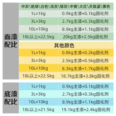 Green Big red Light gray Cream fruit peptide green Silver gray Medium gray Medium phthalate blue White Brown purple red Medium yellow Black polyurethane sealing primer Cover varnish