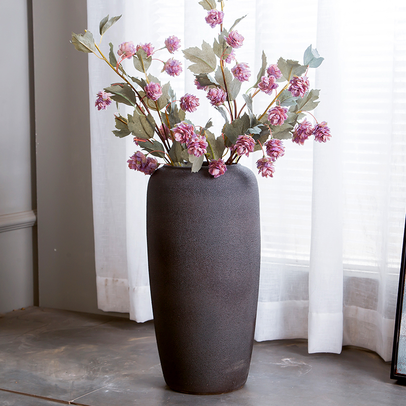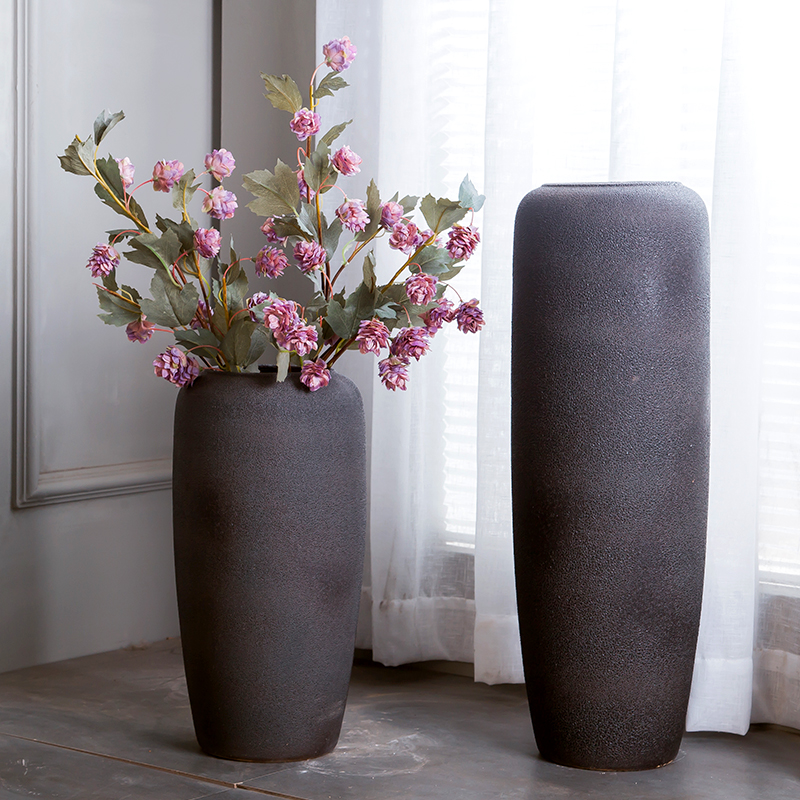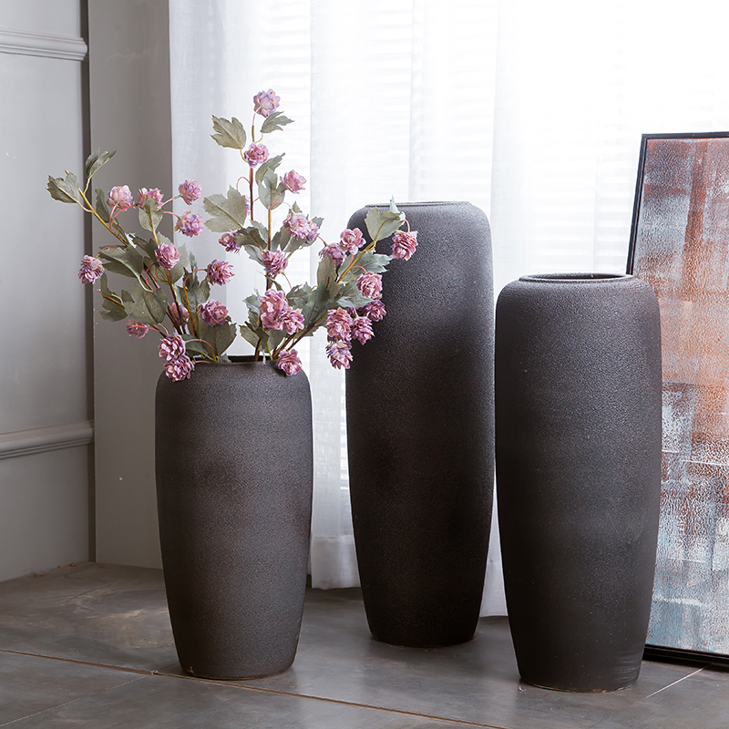 Jingdezhen porcelain floor-to-ceiling large vase modern minimalist retro nostalgic black flowerpot living room hotel club decoration