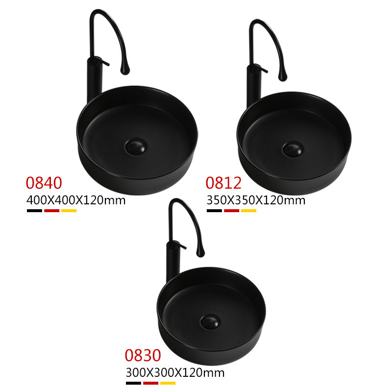 0840 black basin delivered black sewer suit 0840 black basin with black square tap package 0840 black basin with black large waterfall tap package 0840 black basin matching black bullet train tap