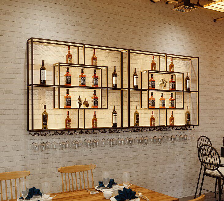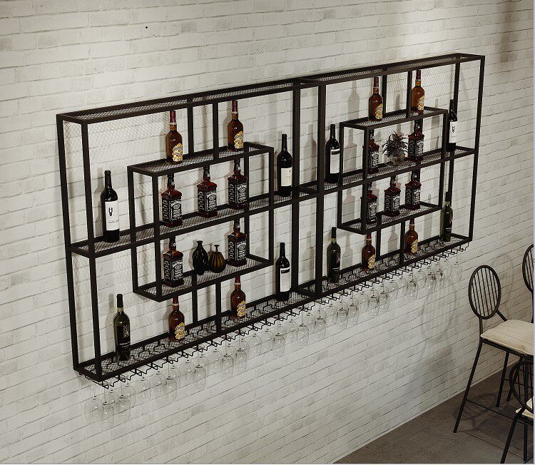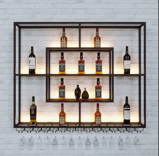 Iron Art New Wine Rack Hanging Light Wine Cabinet Restaurant Home Bar Red Wine Hanging Cup Decorated Wall Shelf-Taobao