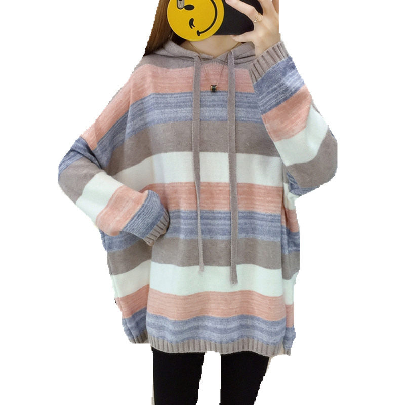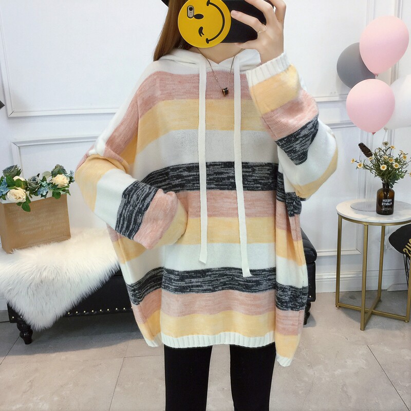 Pregnancy Woman Dress Autumn Clothing New Korean Version of the long version Lianhood headsets Loose Clothing Loose lean autumn and winter bat sleeves Knitted Cardiovert