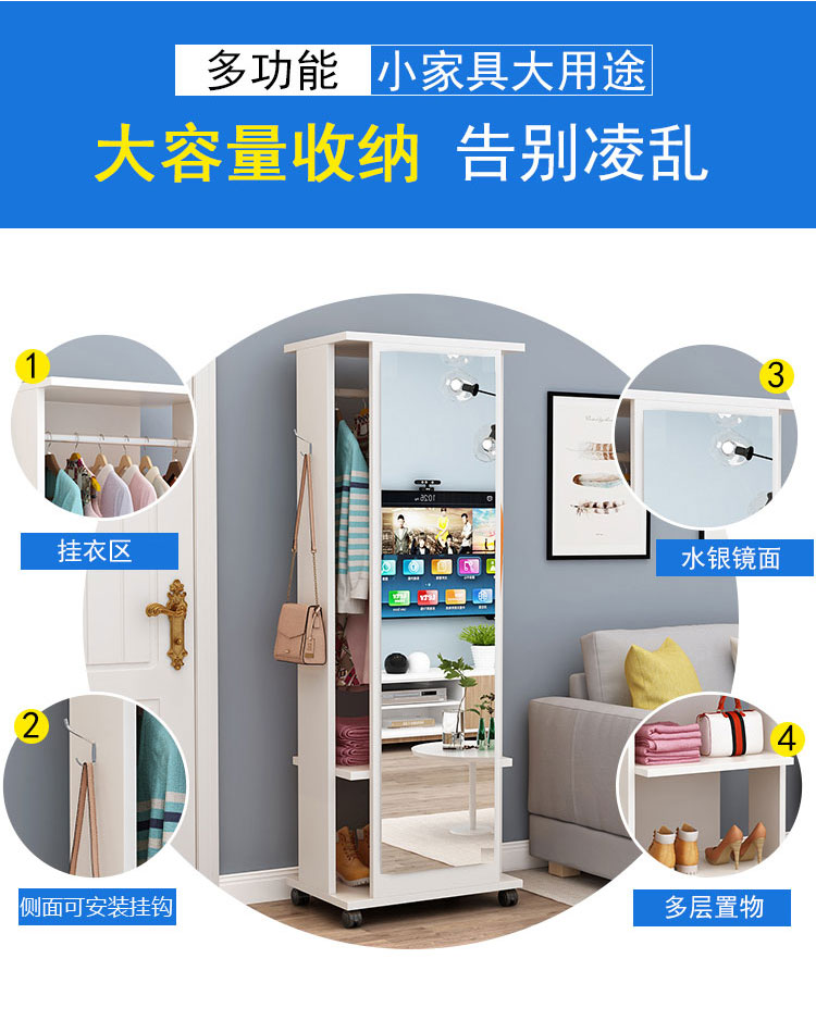 Bedroom clothing cap rack minimalist wearing hanger with mirror full body mirror moving mirror rack swivel shelve hanger Indoor