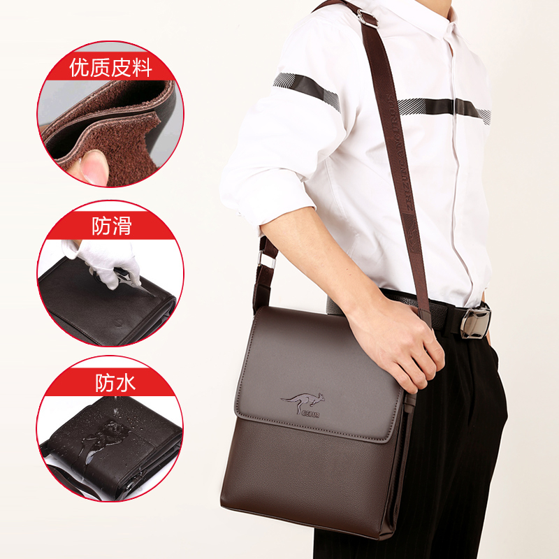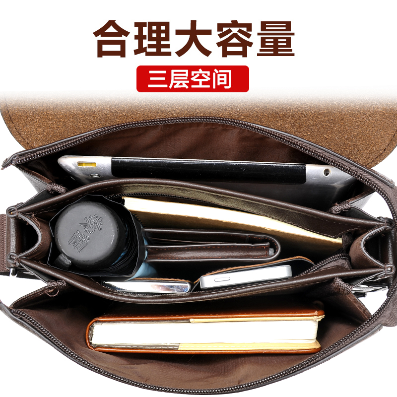 Men's Bag Single Shoulder Bag Genuine Leather Skew Satchel Head Layer Bull Leather Men's Bag Business Briefcase Briefcase Brief Cross Bag Hanging Bag-Taobao