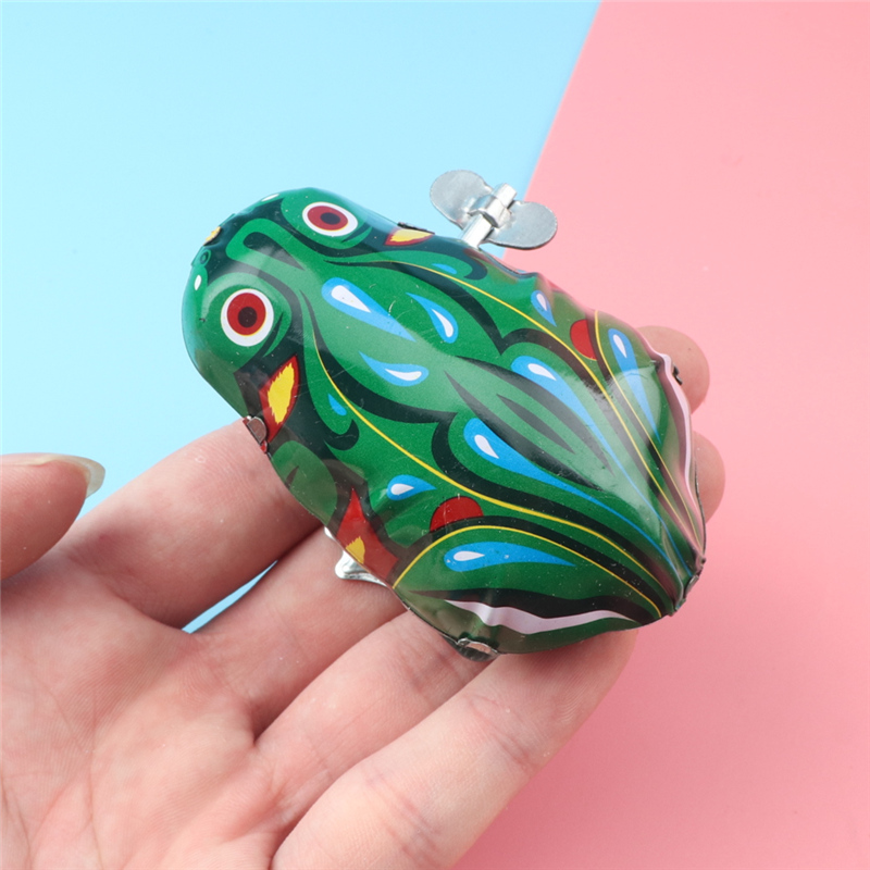 Iron Sheet Frog Jump Frog Child Baby Baby Little Animal 80 Rear Nostalgic Toy Puzzle Clockwork to stall the source