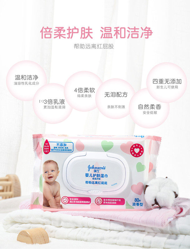Johnson & Johnson Baby Berou Skin Care Wipes 80 Tablets 3 Packs Newborn Anti-Red PP Stay Away from Red Fart Baby Wet Wipes
