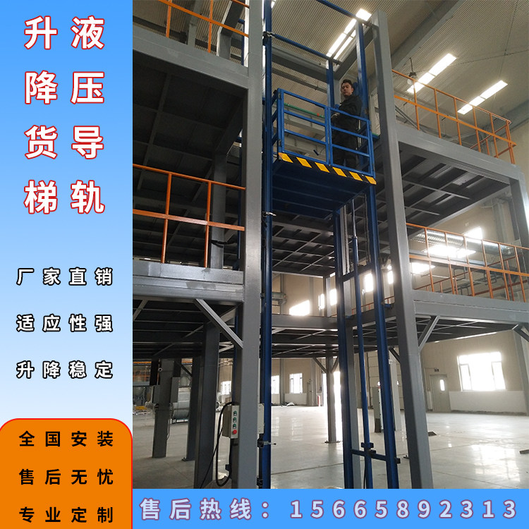 Professional customized stationary lift simple hydraulic double-track cargo ladder storeroom unloading rail style lifting platform
