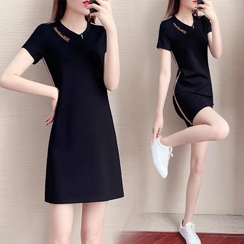 Tide brand dress 2022 summer cover the belly to show thin women's clothing careful machine large size casual sports women's bottoming skirt