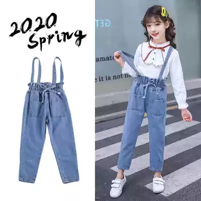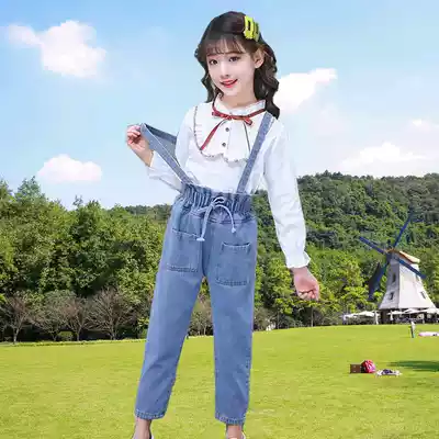 Girls' Spring and Autumn Children 2021 New Children's Set Spring Pants Loose Denim Holding Baby Bag Pants Set