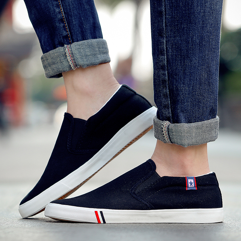 Men's Shoes 2022 New Summer Black and White Classic Canvas Shoes Men's Flat Lazy Cloth Shoes Cloth Slip-On Tide Shoes