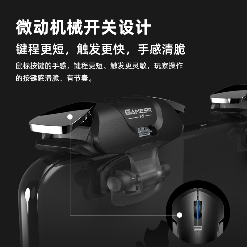 Gaisei Kohen f5 Black elves Mechanical keys Eat Chicken Theoceson game handles One-key Liver mobile phone Handout Peace Little Auxiliary Magic Bee Spurs with Bring Your Own Pressure Gun Metal External Device Elite