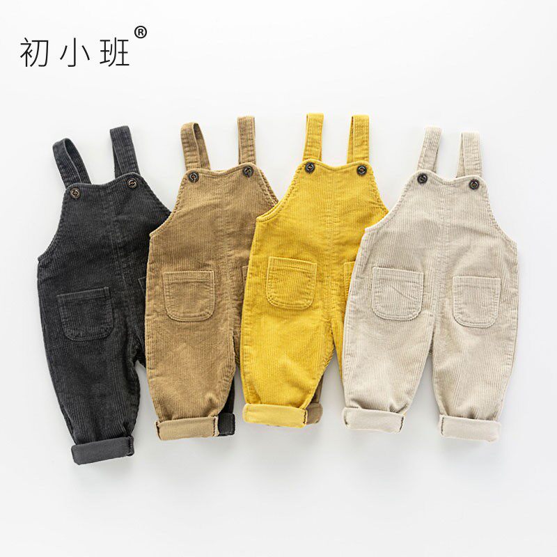 Baby corduroy suspender pants spring and autumn tide 0-1 a 3-year-old children's jumpsuit casual dirty plus fleece baby cover pants