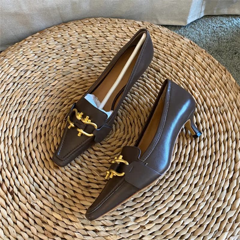 2022 new French style retro single shoes women's summer black high heels women's stiletto 5cm net red square head shallow mouth women's shoes