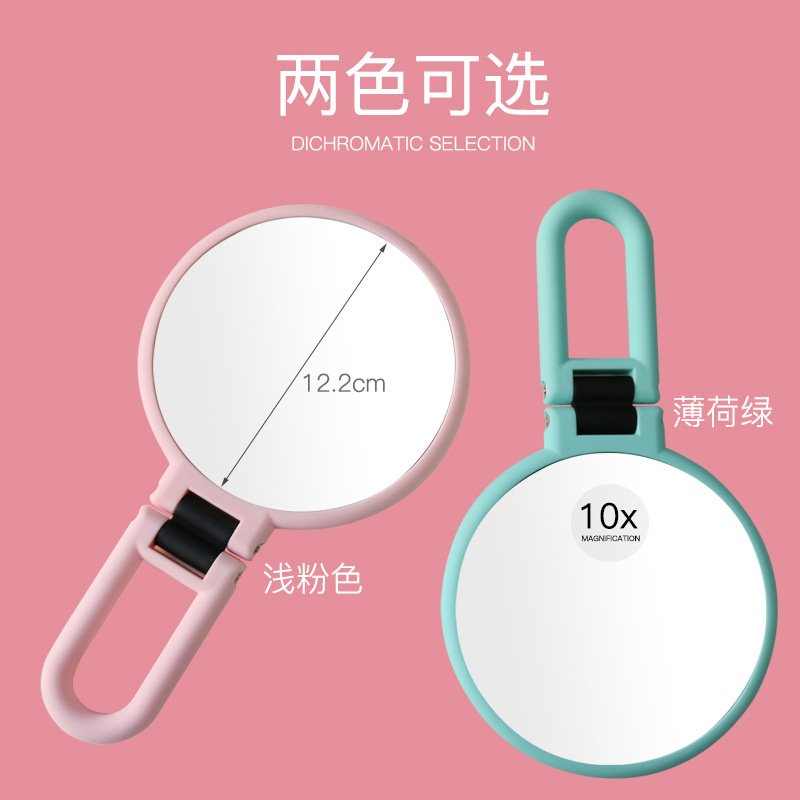 Portable beauty makeup double-sided 10 times magnifying mirror acne black and white head closed mouth makeup portable princess folding handle mirror