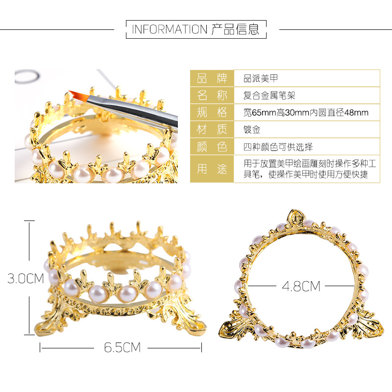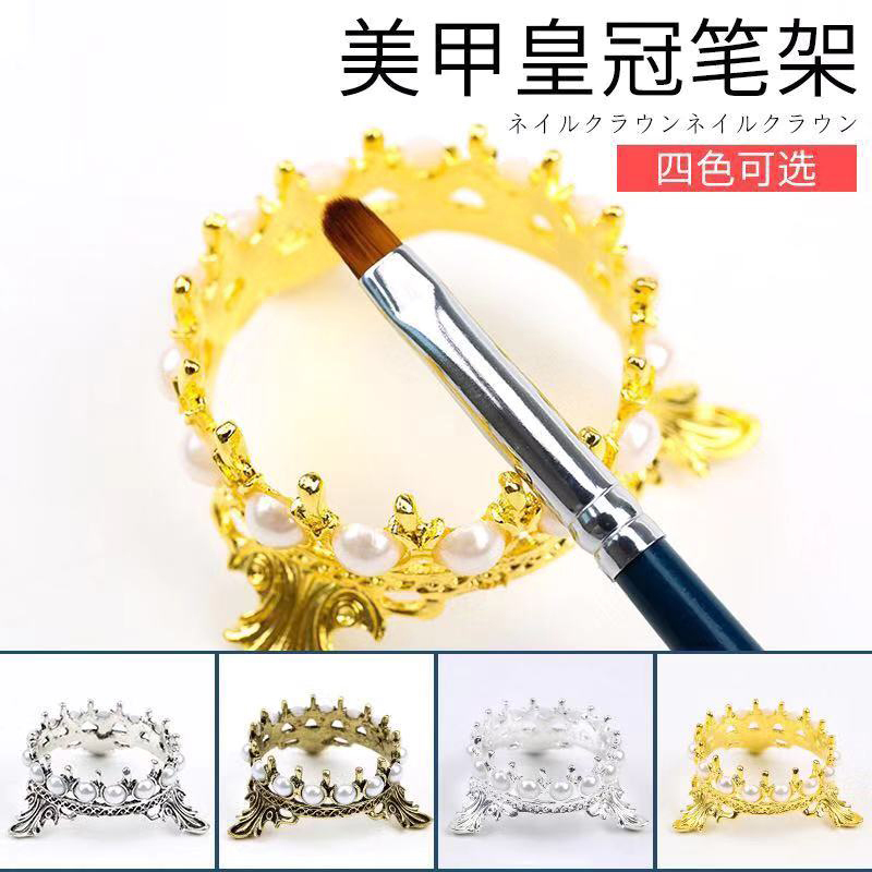 Nail art pen holder crown pearl Japanese retro metal acrylic transparent light therapy painted drawing line pen tool