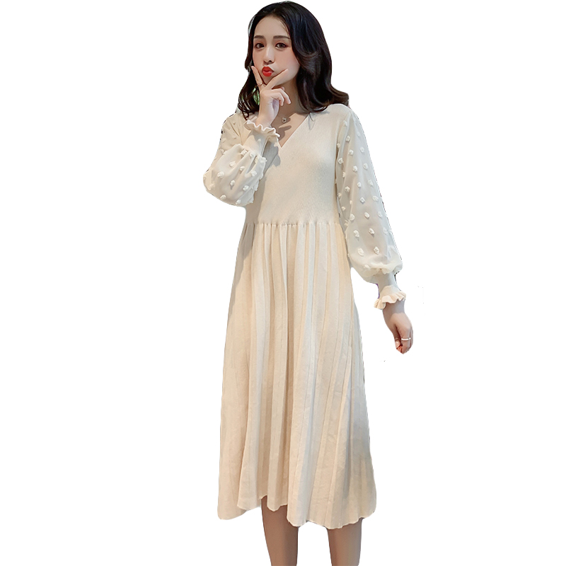 Maternity wear spring and autumn fashion suit maternity wear Korean version simple sweater mid-length top gentle inner winter wear